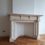 De stijlvolle schouw met zwarte afwerking past perfect bij het interieur.